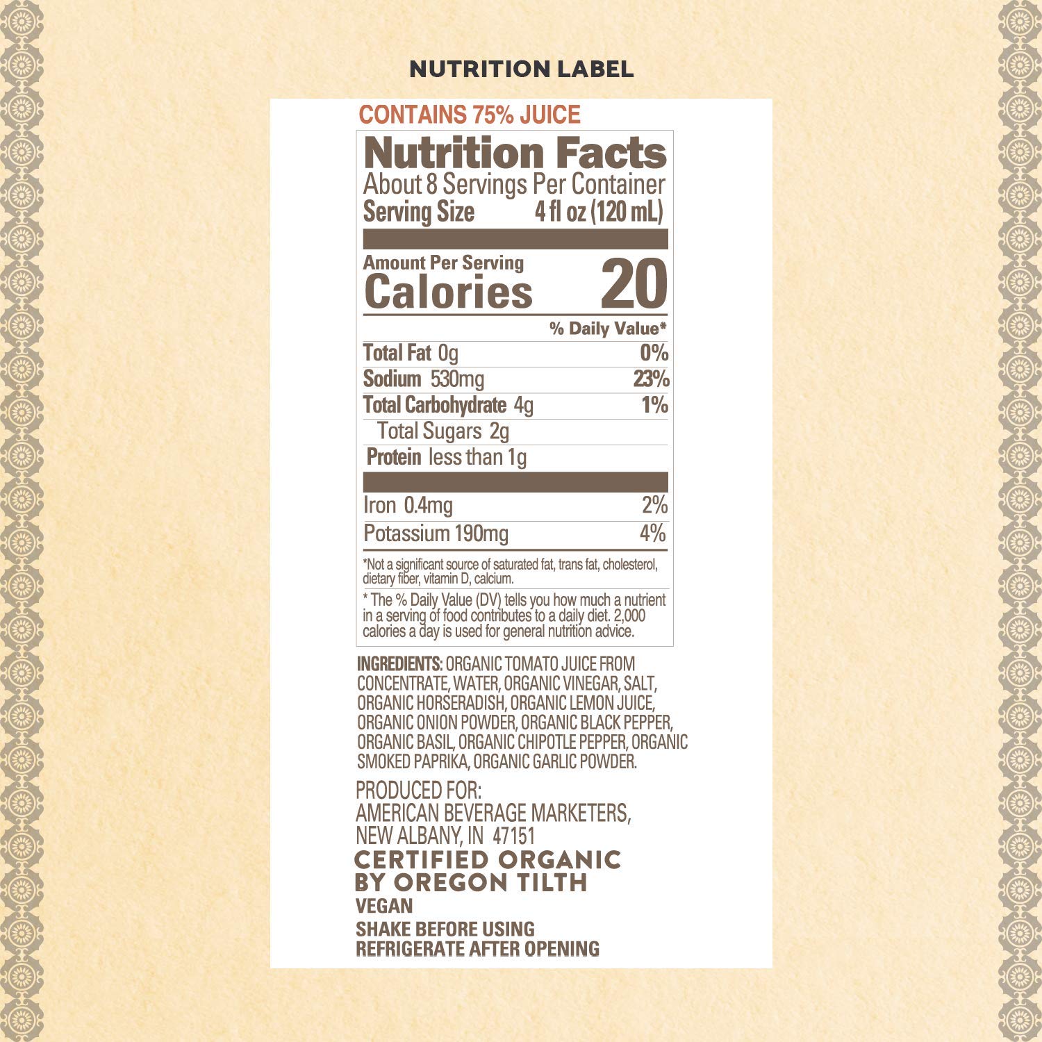 With certified organic ingredients processed using natural techniques, we’ve created an Organic Bloody Mary mix that is worthy of its history. We combine hand-pick organic Roma tomatoes, smoky chipotle peppers, hot horseradish and select spices to bring you a bottle of Bloody Mary mix that is the perfect balance of salty, sweet, smoky and spicy.