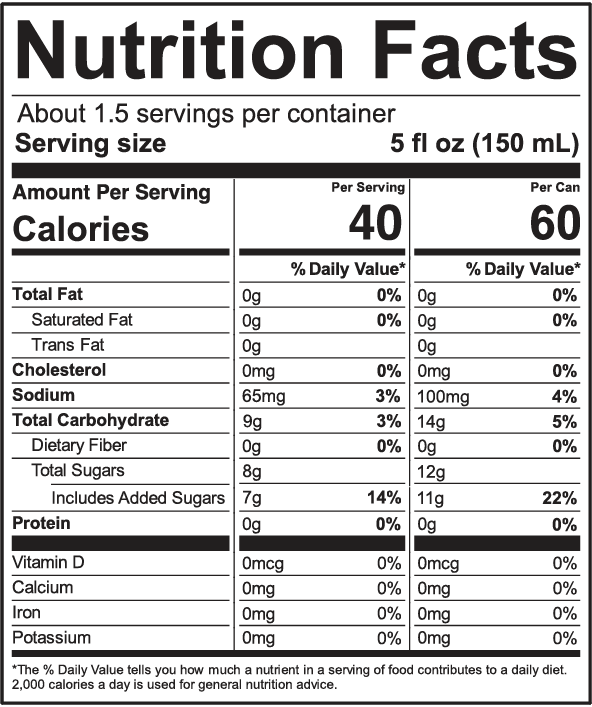 Water, Agave Nectar, Lime-Tangerine Juice blend from concentrate, Natural Flavors, Sea Salt, L-theanine, Lion's Mane Extract, Reishi Mushroom Extract, Turmeric Extract (for color), Jalapeño Extract.