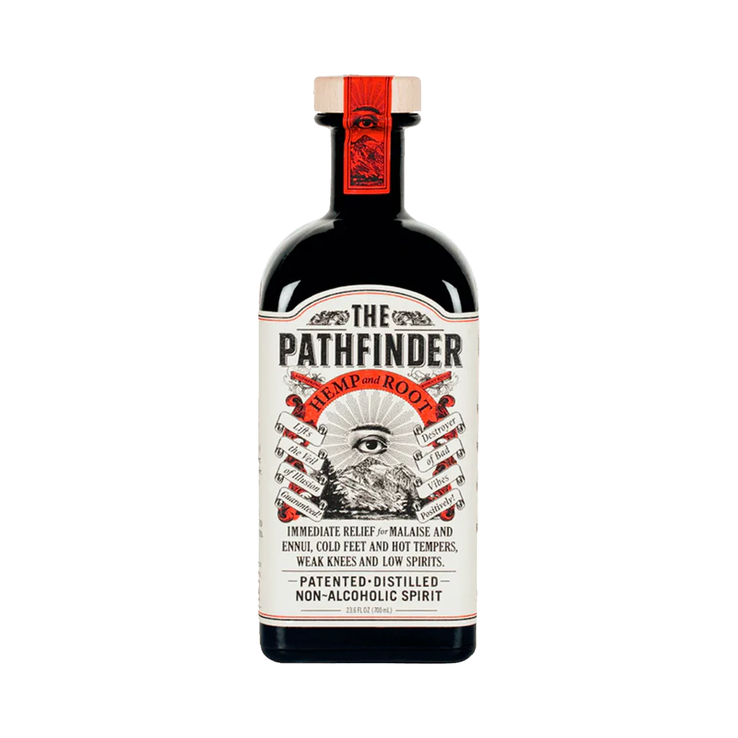 Meet The Pathfinder Hemp & Root. A non-alcoholic spirit of its own class. Distilled and complex. Bittersweet and flavorful. Citrus, spice, and a whole bunch of roots and herbs: wormwood, angelic root, ginger, juniper, and orange peel, to name a few.